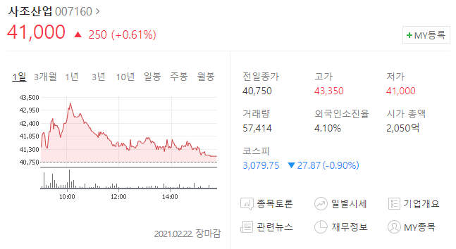 일단 사조산업 시총 2050억