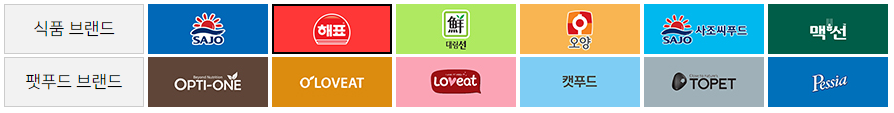 해표 브랜드(해표 식용유, 순창 고추장 된장, 옹가네 간장 등 장류),