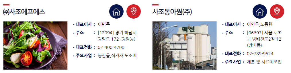 사조그룹의 공장과 회사들...(왜 이렇게 많아? 이게 시총 2천억?)