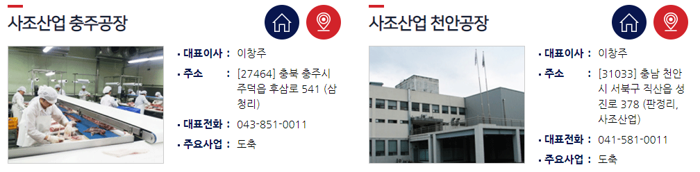 닭고기, 오리고기, 돼지고기 등 육가공업까지 하고 있다.