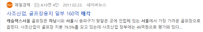 핵심은 역시 사조산업이 79.5%의 지분을 들고 있는 캐슬렉스서울 골프장이다.