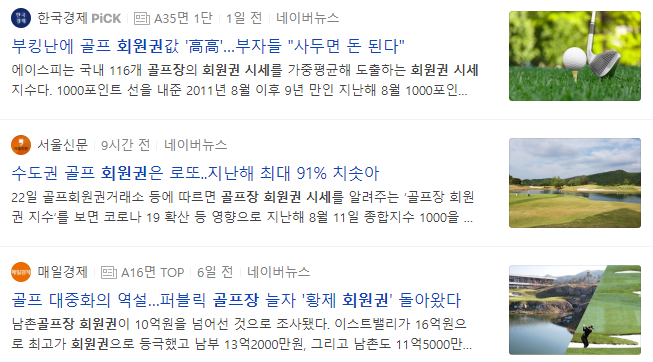 그간 골프회원권의 가치 상승(거의 로또)