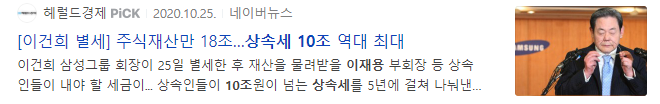 18조원으로 낼 상속세가 무려 10조!! ㅠㅠ